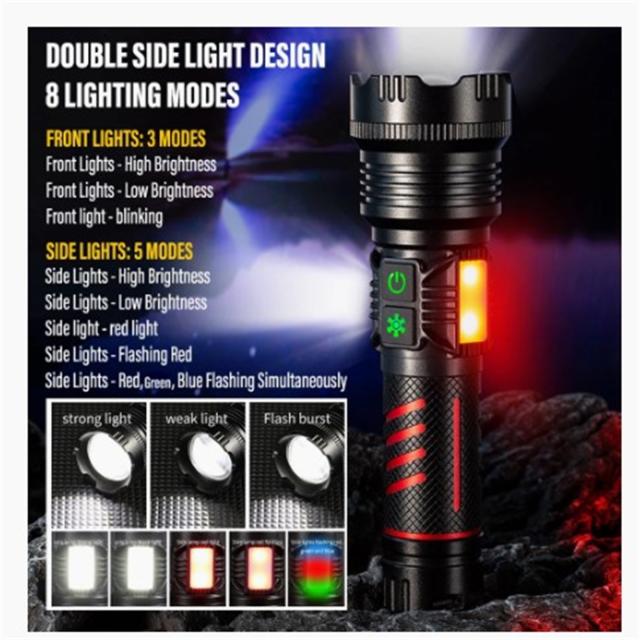 LED懐中電灯充電式ズームストロングライトアルミニウム合金屋外照明トーチサイドライト付き