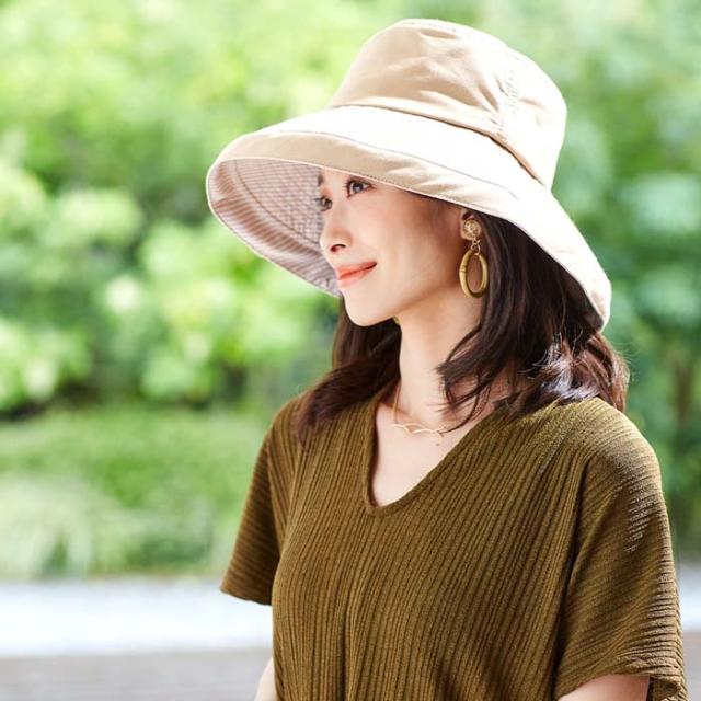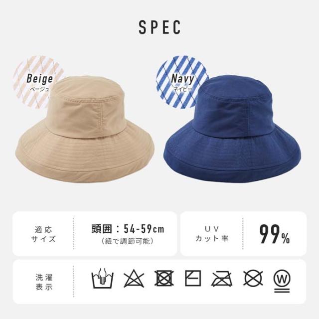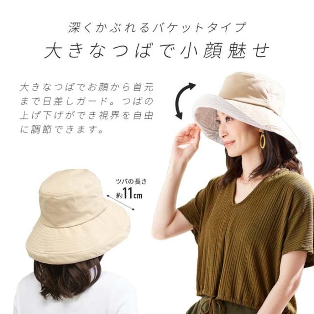 UVカット帽子 深くかぶれるつば広バケット帽子 1009811 UVカット率99% 紫外線カット ネイビー レディース ハット 【メール便送料無料】