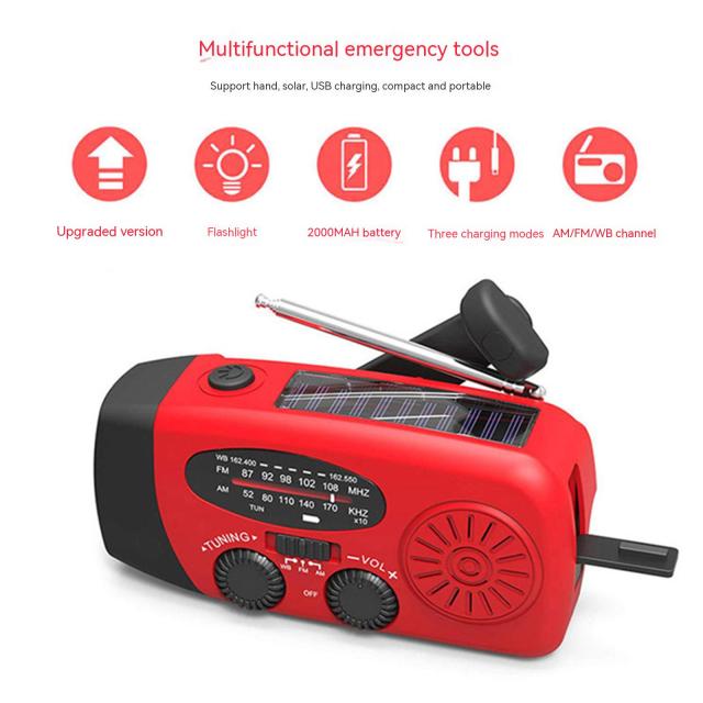 ポータブル緊急ソーラーラジオ 2000mah バッテリーパワーバンク充電器防水超高輝度フラッシュライト