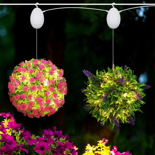 回転するフラワー ボールあたり 100 個のライト、10 cm 間隔、ワイヤー直径 0.33 MM、ラベンダー ボール、ラベンダー ボール直径 25 cm