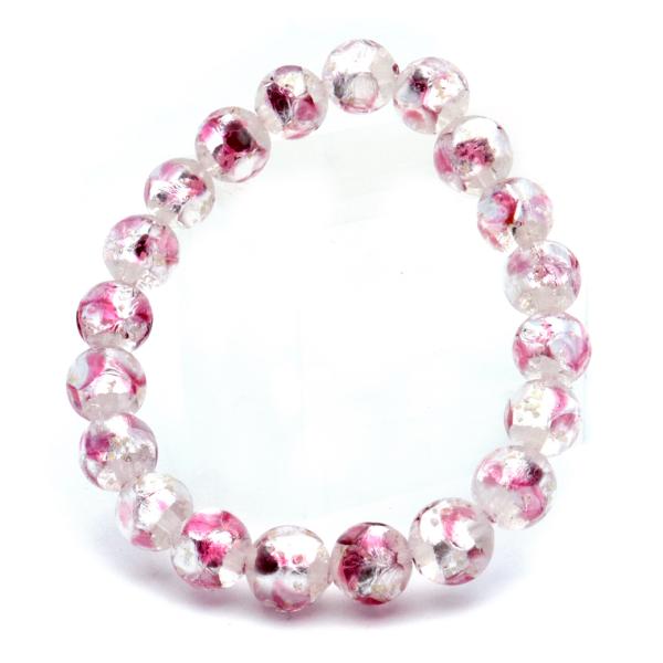 ホタルガラス ブレスレット 光る クリア ピンク ビーズ 10mm 透明 桃色 蓄光 夜光 とんぼ玉 ほたる 蛍 トンボ玉 アクセサリー 数珠 沖縄 お土産 琉球