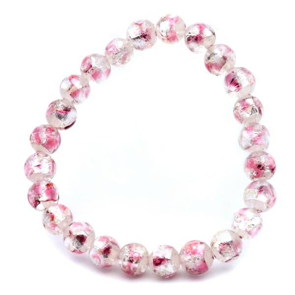 ホタルガラス ブレスレット 光る クリア ピンク ビーズ 8mm 透明 桃色 蓄光 夜光 とんぼ玉 ほたる 蛍 トンボ玉 アクセサリー 数珠 沖縄 お土産 琉球