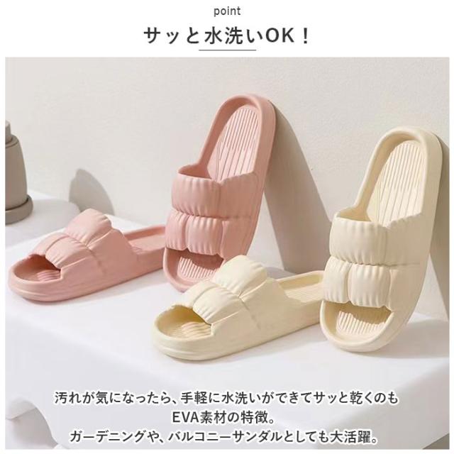 | 商品説明 | ・ルームシューズにも水回りにも最適♪ソフトな履き心地がクセになる「EVAルームスリッパ」が新登場! 【疲れにくい♪ふんわりクッション】 ・クッション性のある柔らか素材のフットベッドが、足裏にかかる重みや衝撃を優しく軽減。お料理やなど家事で立ち仕事の多いママさんに優しい履き心地。 【ふわっと軽いEVA素材】 ・軽量なEVA素材で一体成型し、片足の重量はわずか約65g。履いていないみたいにかる〜いのが嬉しいポイント!(※25cmサイズの商品、片足分の重量です。) 【オールシーズン快適】 ・つま先の開いたオープントゥスタイルなので、蒸し暑さの気になる季節でも快適。 【水回りでも使える!】 ・ギザギザの溝が刻まれた滑りにくいアウトソールで、バスサンダルやシャワーサンダルなど、水回りで使用しても安心。 【サッと水洗いOK!】 ・汚れが気になったら、手軽に水洗いができてサッと乾くのもEVA素材の特徴。ガーデニングや、バルコニーサンダルとしても大活躍。 【インテリアに馴染むカラー】 ・ファブリック風の柔らかなシルエットに、ベーシック&くすみカラーのバリエーションがインテリアにフィット!オフィス用サンダルにもオススメ。 |