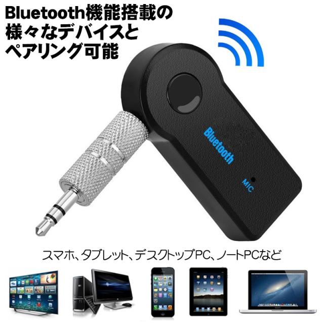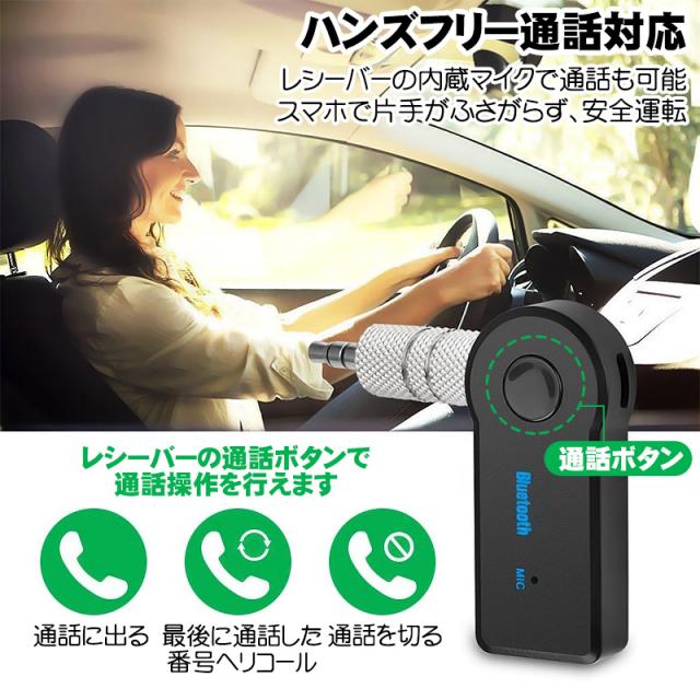 | Bluetoothに対応していない有線のイヤホンやスピーカーなどを無線化できるワイヤレスレシーバーです。 レシーバーに有線オーディオ機器を接続し、スマホやタブレット PCなどのBluetooth機能搭載デバイスとペアリングするだけで、お手持ちのオーディオ機器を手軽にワイヤレス化できます。 3.5mmプラグが付属しますので、AUX端子搭載の車載スピーカーなどでもお使い頂けます。 通話機能にも対応しています。レシーバー内蔵のミニマイクでハンズフリー通話も可能です。 レシーバー本体の通話ボタンで通話に出る 通話を切る操作も可能です。 【WEB説明書付き】 日本語の使用方法WEB説明書が付属します。 WEB説明書ですので、商品と同梱の紙のQRコードを読み込んで下さい。 |