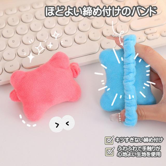 | 手首に通せるリストバンド型のリストレストです。 ほどよい高さと角度で手首の疲労を軽減。マウスやキーボード操作をする時にぴったりです。 リストバンド型なので、手首の動きに合わせて一緒に動き、手首をサポートします。 PC作業が終わった後も、かわいいリストバンドとしてそのまま着けていられるデザインです。 バンド部分は伸縮性のあるゴムになっているので、髪を留めるヘアゴムとしても使えます。 キツすぎずゆるすぎない程よい締め付け感のリストバンドです。 クッションやバンドにはふわふわで手触りが心地よい生地を使用しています。 |