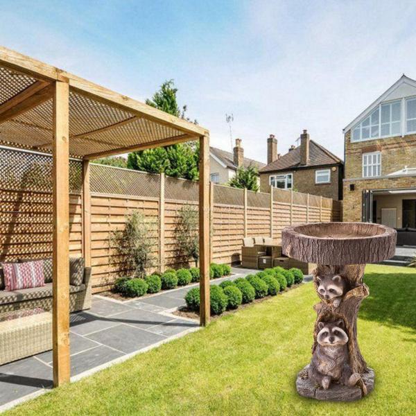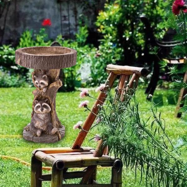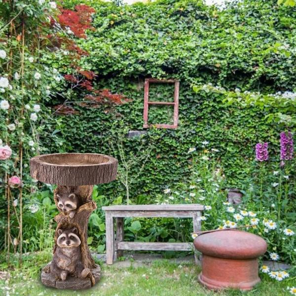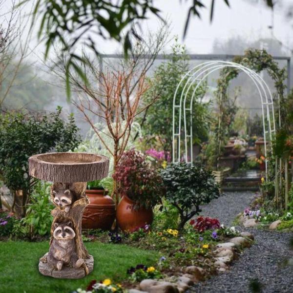 樹脂動物置物ガーデンステークス芝生の装飾バードバス耐久性のある彫刻アライグマ