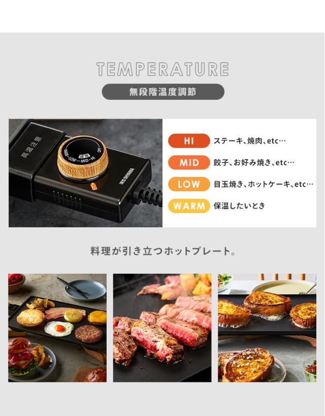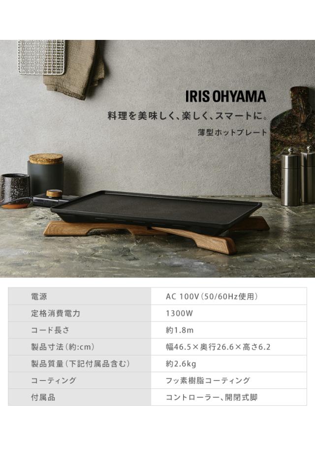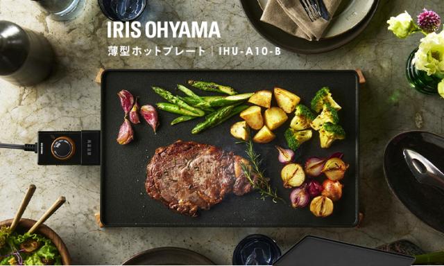 ホットプレート 薄型 スリム おしゃれ アイリスオーヤマ 焼肉 煙 減煙モード におい軽減 無段階温度調節 立てて収納 脚 折りたたみ 木目調 薄型プレート ヒーター内蔵 一体型 お手入れ簡単 丸洗い キッチン家電 IHU-A10-B 薄型ホットプレート *