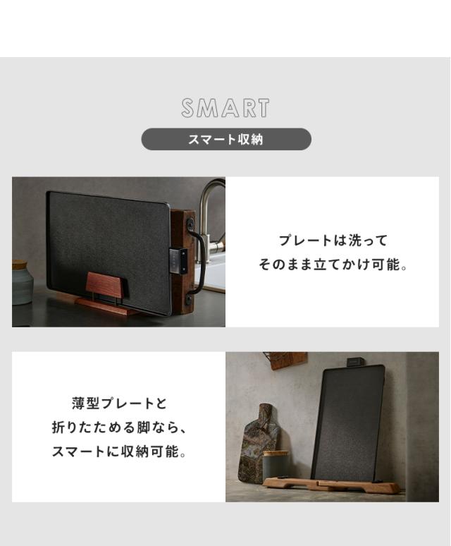 薄型プレートと折りたためる脚なら、スマートに収納可能。
