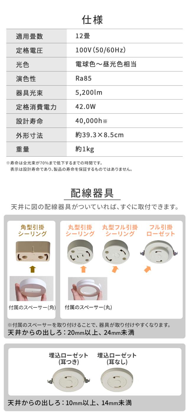 LEDシーリングライト[〜12畳/5200lm/調光・調色]