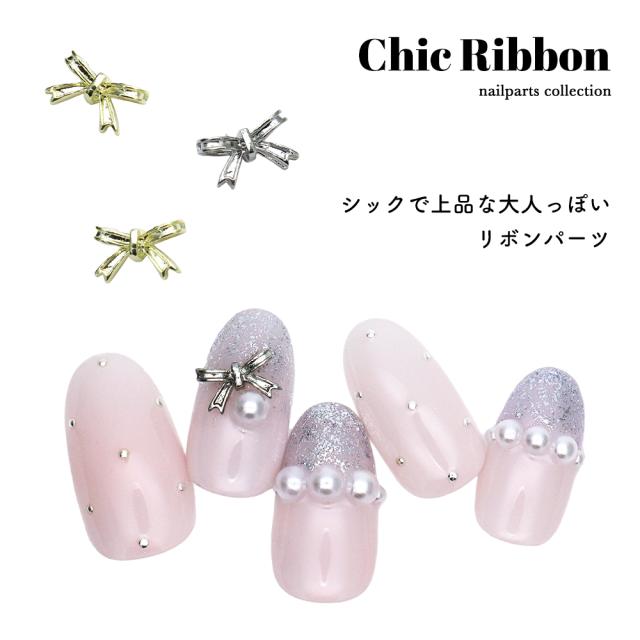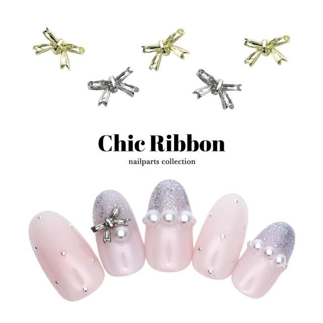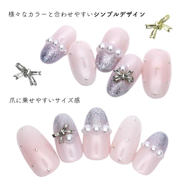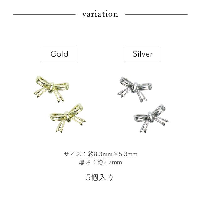 ネイルパーツ シックリボンパーツ [ゴールド/シルバー] 5個入り