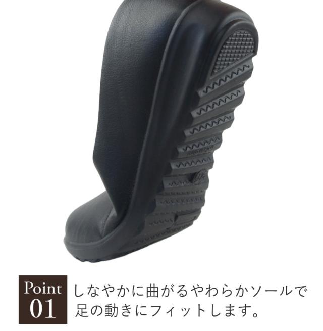 アッパーには柔らかい合皮素材を使用し、ライニング(裏材)には柔らかくクッション性のある素材を使用しているので長時間履いても足が痛くなりにくい!