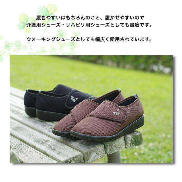 履きやすいのはもちろんのこと、履かせやすいので介護用シューズ・リハビリ用シューズとしても最適です。