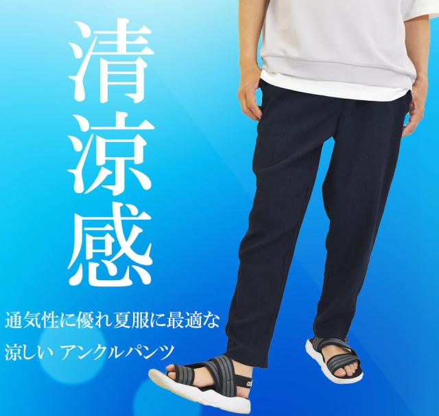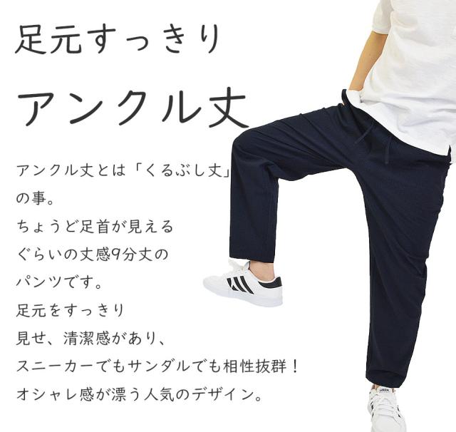 夏新作 送料無料 イージーパンツ アンクルパンツ メンズ 9分丈 10分丈 パンツ 涼しい ズボン 夏用 ゴルフパンツ 速乾 涼感 春 夏 秋 黒 紺 ウエストゴム リラックスパンツ アンクル丈 くるぶし丈 裾絞り おしゃれ リゾート 海 山 アウトドア スポーツ