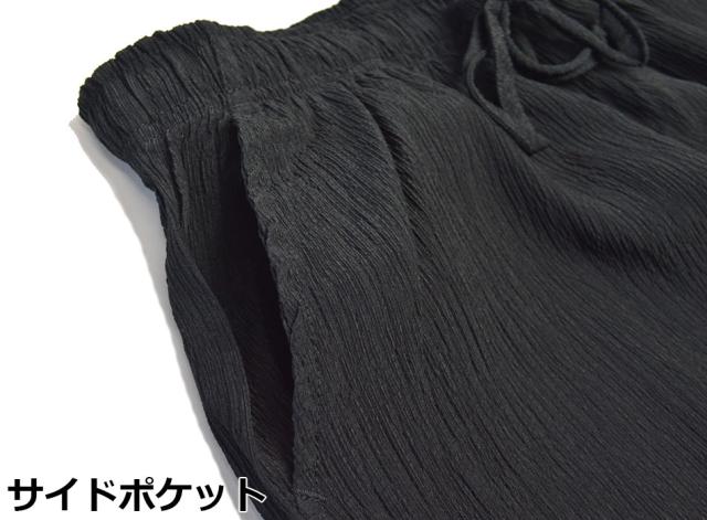 サイズ(cm):ウエスト(ゴム)/ ヒップ/ 股上(前)/股下/ 裾幅/ 総丈