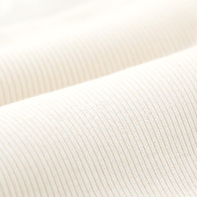 細いウエストゴムによる締め付けもストレスのひとつと考え、ウエスト部分にもゴムは一切使用していません。ショーツを支えるのは、伸縮性のある糸を編み込んだ、帯状の柔らかなオーガニックコットンのテレコリブ生地。 ゴムの強い伸縮ではなく、かといって紐のように伸び縮みしないわけでもなく。 膝上までしっかり覆う安心丈です。
