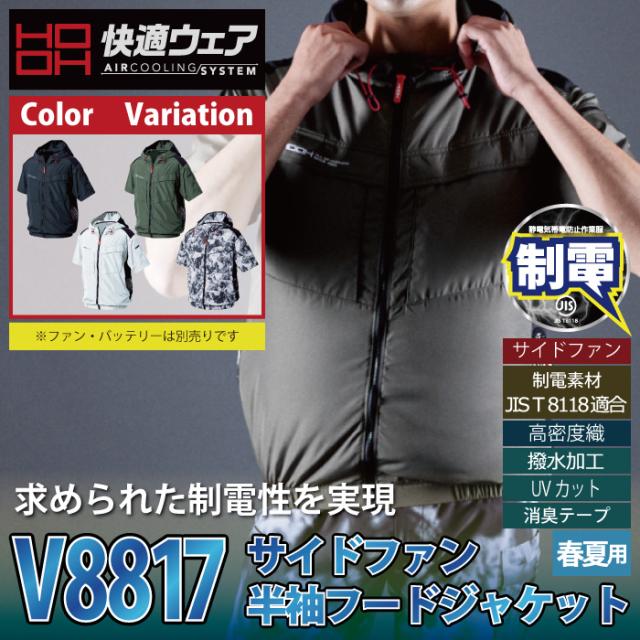 【V8817 サイドファン半袖フードジャケット】
