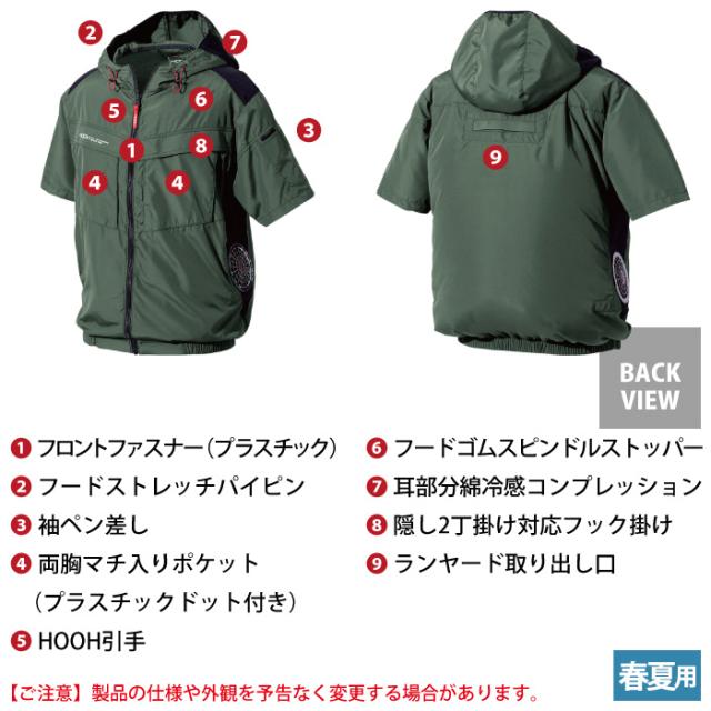 ファン付きウェア (服のみ) 村上被服 HOOH 鳳凰 作業服 V8817 サイドファン半袖フードジャケット 6L