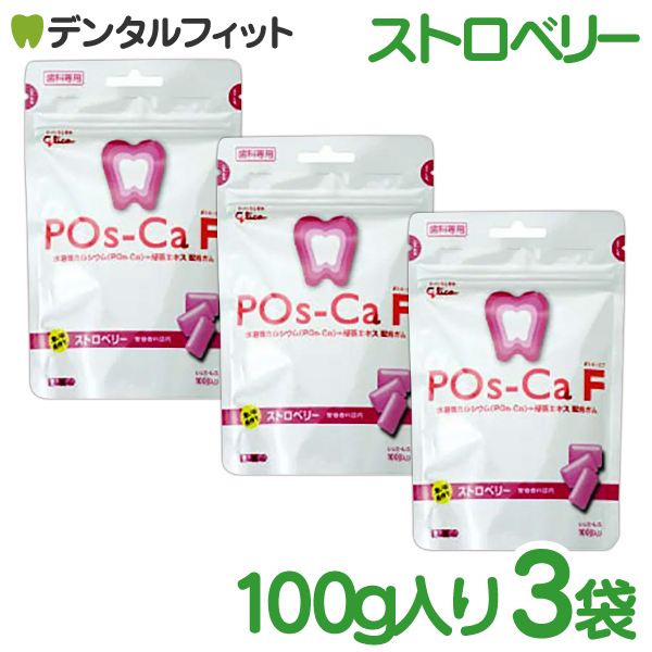 【メール便選択で送料無料】ガム ポスカ セット キシリトール Pos-Ca(ポスカ) F ストロベリー パウチタイプ100g×3袋