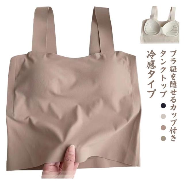 カップ付ブラ紐隠しインナー 接触冷感 ひんやり 冷感 タンクトップ シームレス 胸元 隠す インナー カップ取り外し可能 ブラ紐 レディース キャミソール タンクトップ キャミ インナー ベージュ ブラック モカ 肌色 黒 送料無料