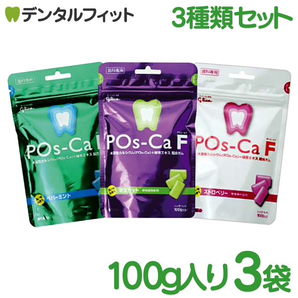 【メール便選択で送料無料】ガム ポスカ セット キシリトール Pos-Ca(ポスカ) F パウチタイプ100g×3袋 ペパーミント マスカット ストロベリー 各1袋