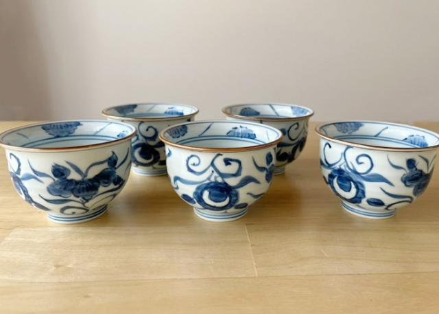 波佐見焼 草花紋 煎茶揃 湯呑 湯のみ 湯呑み おしゃれ 来客用 湯飲み ゆのみ 湯呑みセット 湯呑み茶碗 和食器 煎茶碗 粗供養 記念品 内祝 【伝統工芸・ 陶器の和遊感】