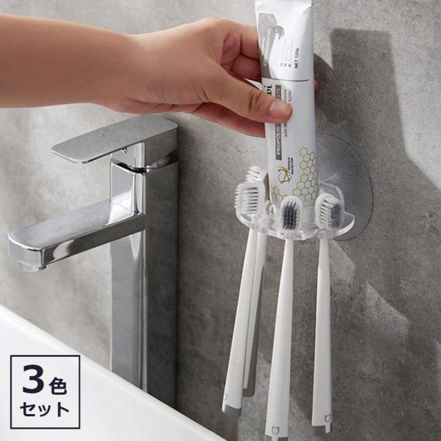 歯ブラシホルダー 吊り下げ 収納 洗面台 お風呂 歯ブラシ置き 便利 グッズ 賃貸 3色セット バスルーム 壁 壁面 壁付け シンプル 送料無料