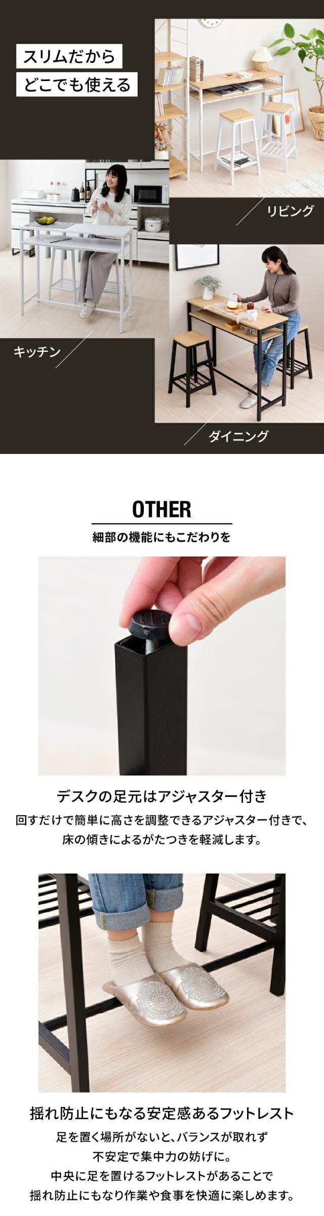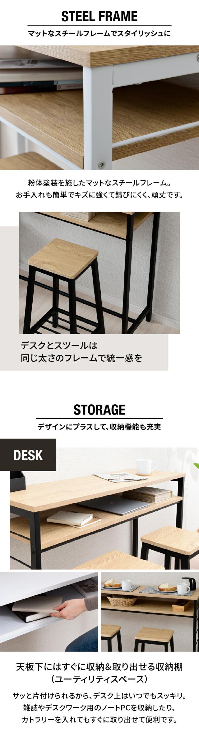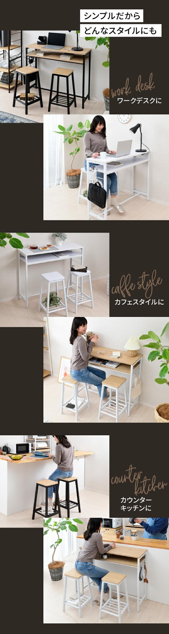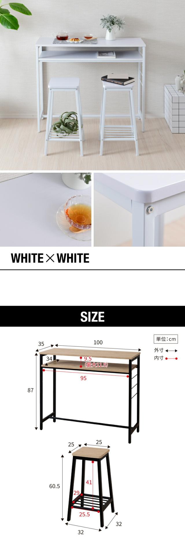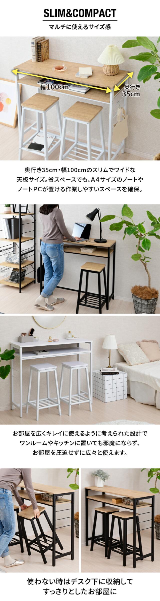 カウンターテーブル スツール 2脚セット 高さ87cm おしゃれ ハイテーブル バーカウンター カウンターデスク ハイスツール 3点セット カフェ チェア 椅子 省スペース 作業台 木製 幅100cm