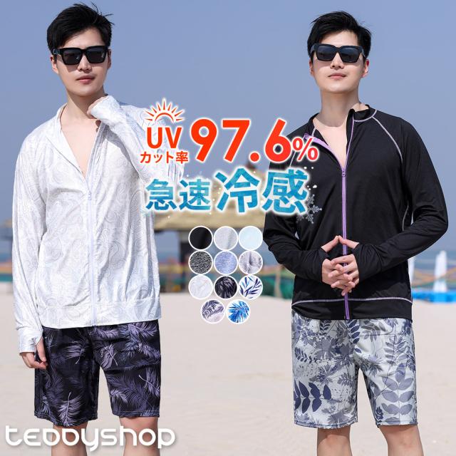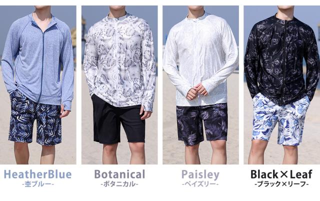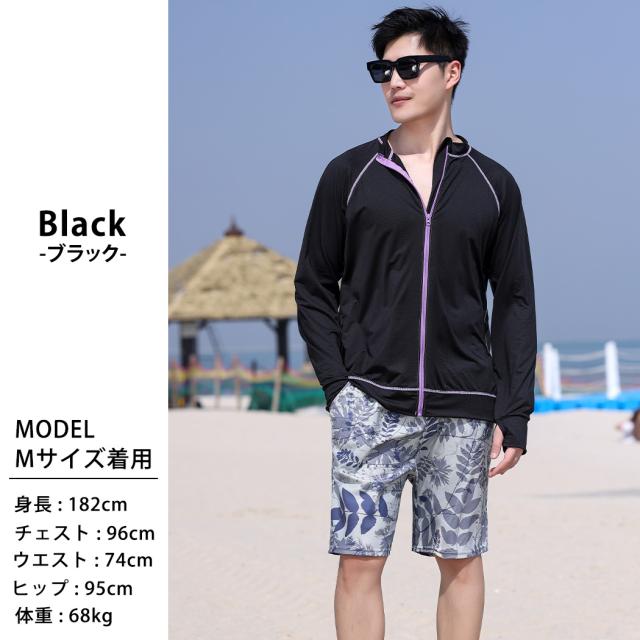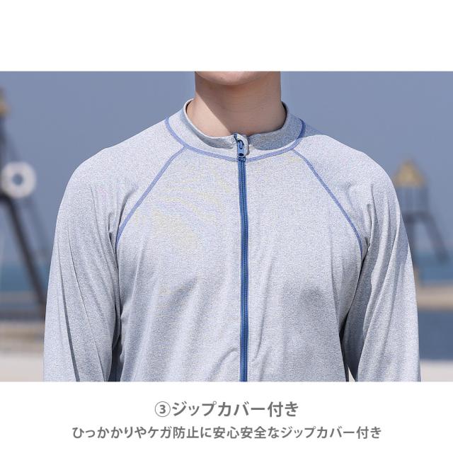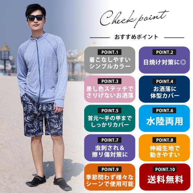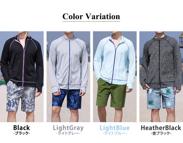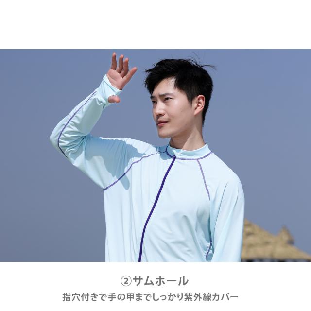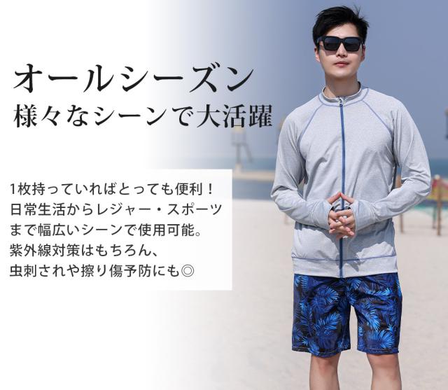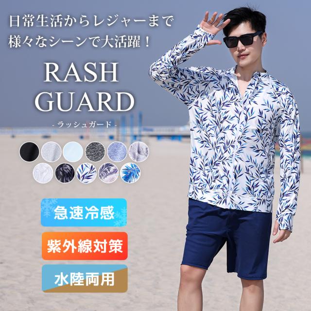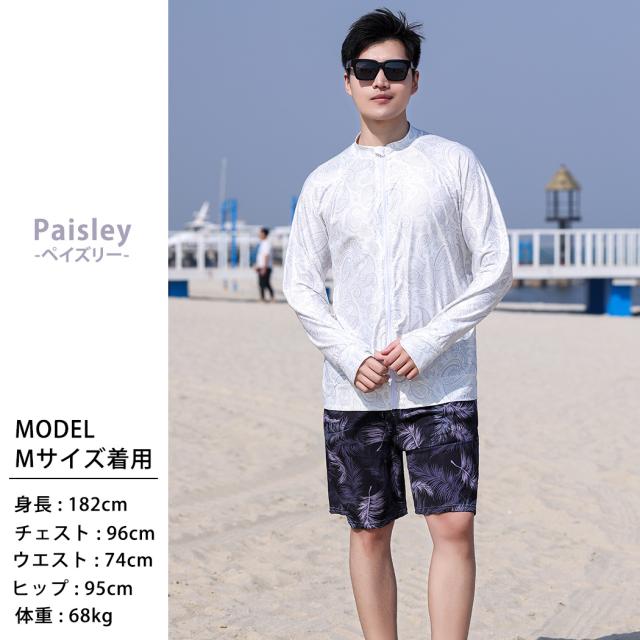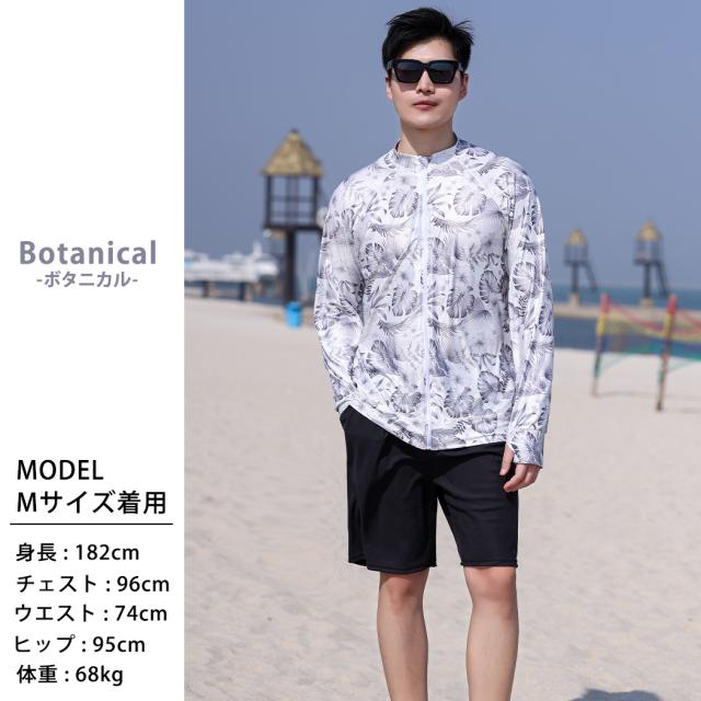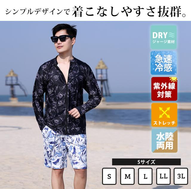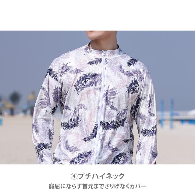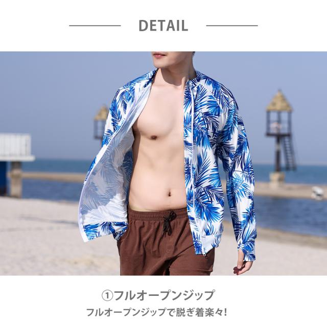 春新作 即納 ラッシュガード メンズ 長袖 ジップアップ トップス 水陸両用 水着 プチハイネック 薄手 ライトアウター 上着 羽織 ジップアップ 指穴 サムホール フードなし 黒 白 無地 ボタニカル ペイズリー スポーツ 水泳 アウトドア キャンプ レジャー 紫外線対策