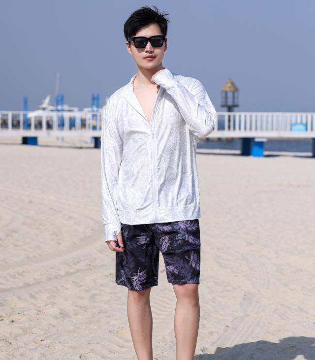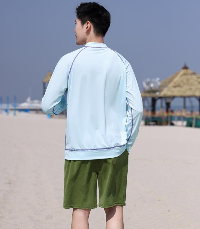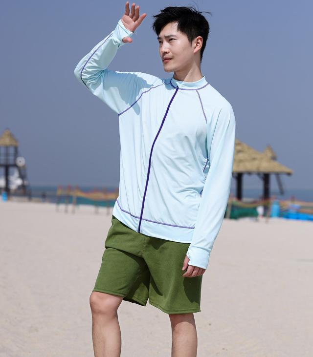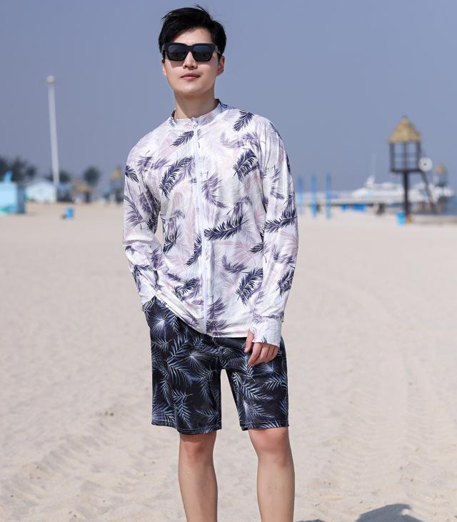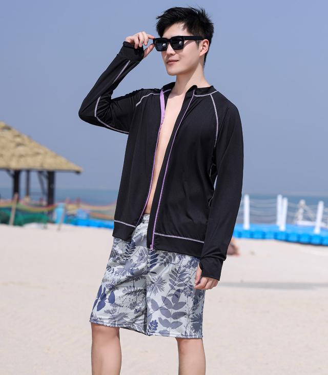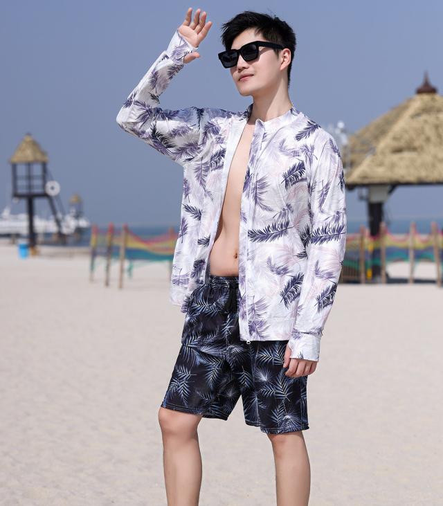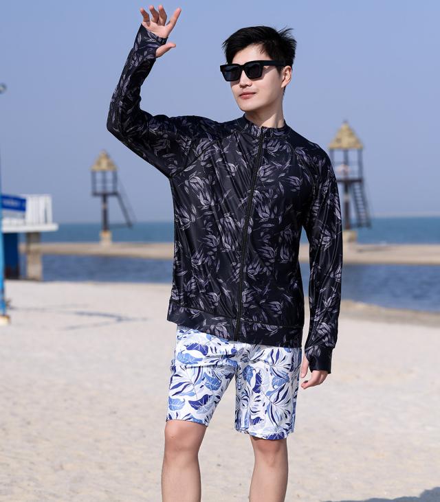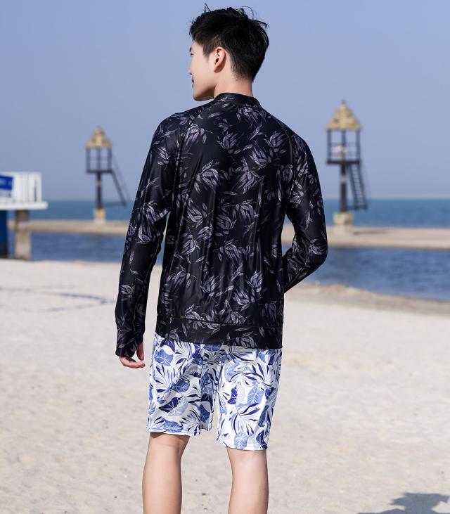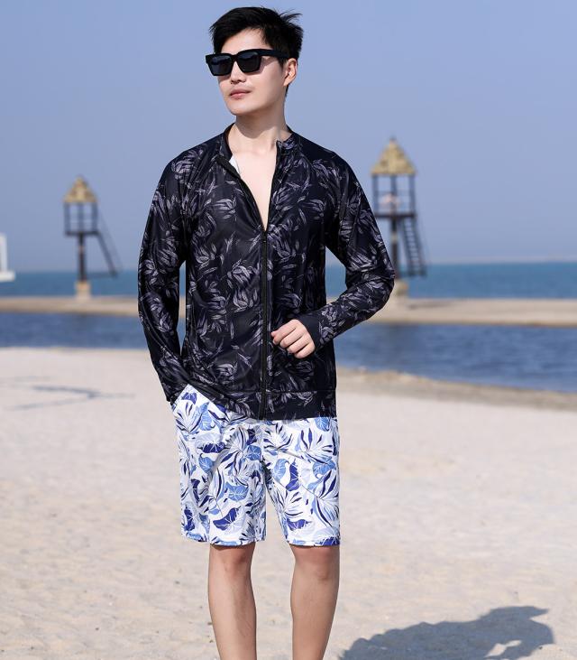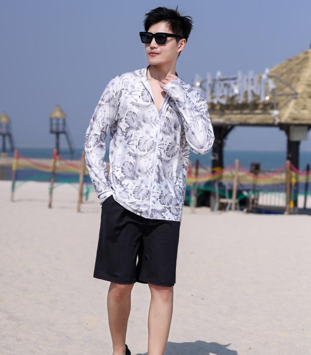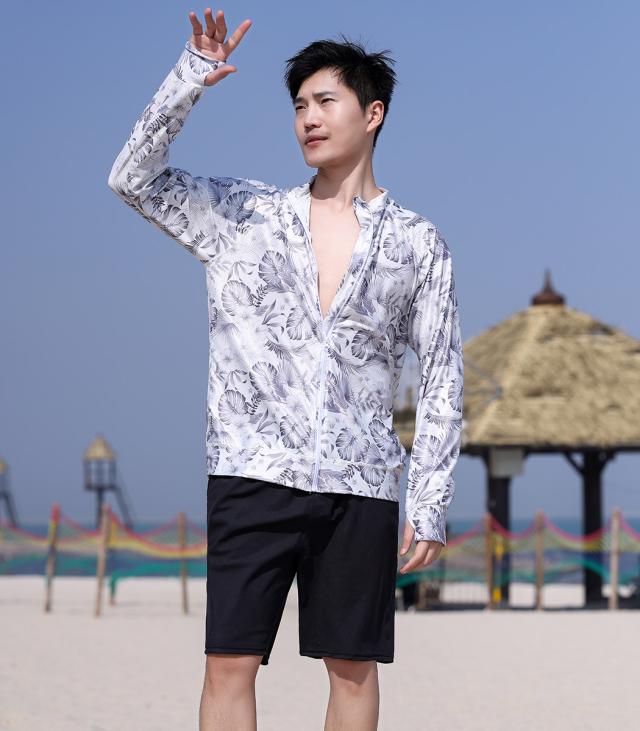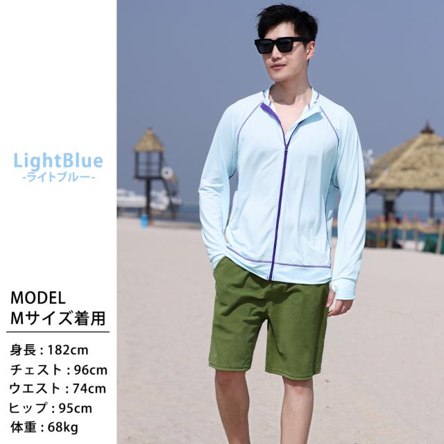 春新作 即納 ラッシュガード メンズ 長袖 ジップアップ トップス 水陸両用 水着 プチハイネック 薄手 ライトアウター 上着 羽織 ジップアップ 指穴 サムホール フードなし 黒 白 無地 ボタニカル ペイズリー スポーツ 水泳 アウトドア キャンプ レジャー 紫外線対策