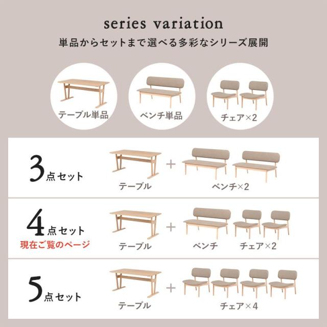 主材:天然木(ビーチ材)、天板:天然木化粧繊維板(ビーチ突板)、張地:ポリエステル、クッション材:ウレタンフォーム