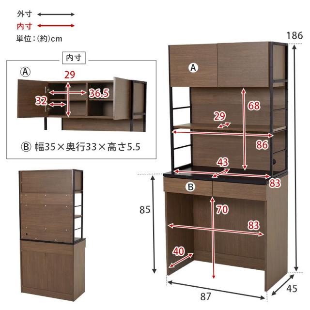 主材:スチール・プリント紙化粧パーティクルボード、天板:合成樹脂化粧パーティクルボード