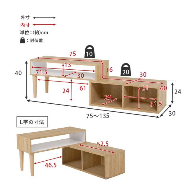 (約)幅75〜135×奥行30×高さ40cm
