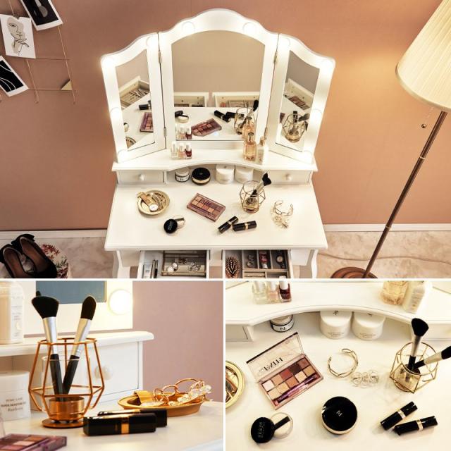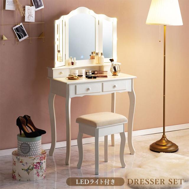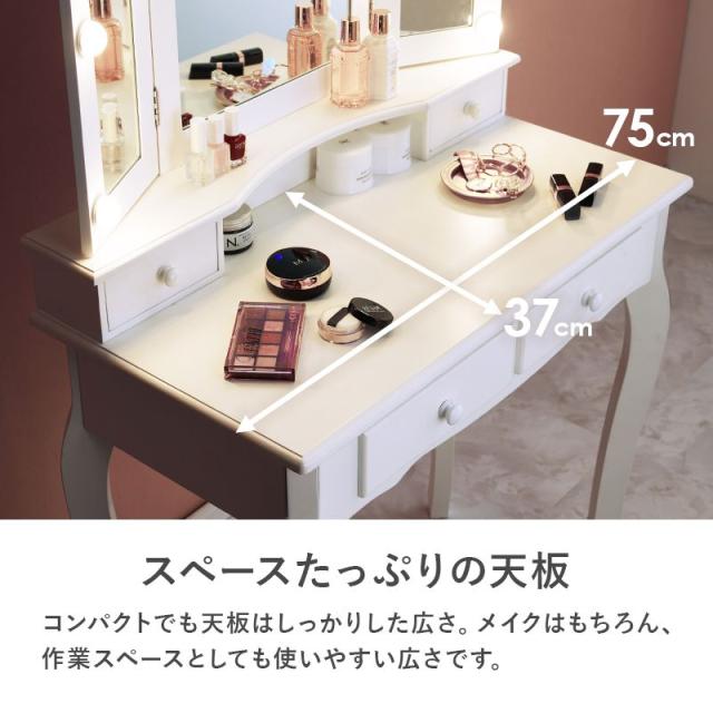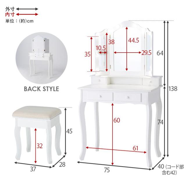ドレッサー:(約)幅75×奥行42×高さ138cm、スツール:(約)幅37×奥行28×高さ45cm