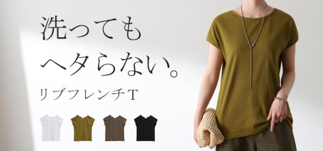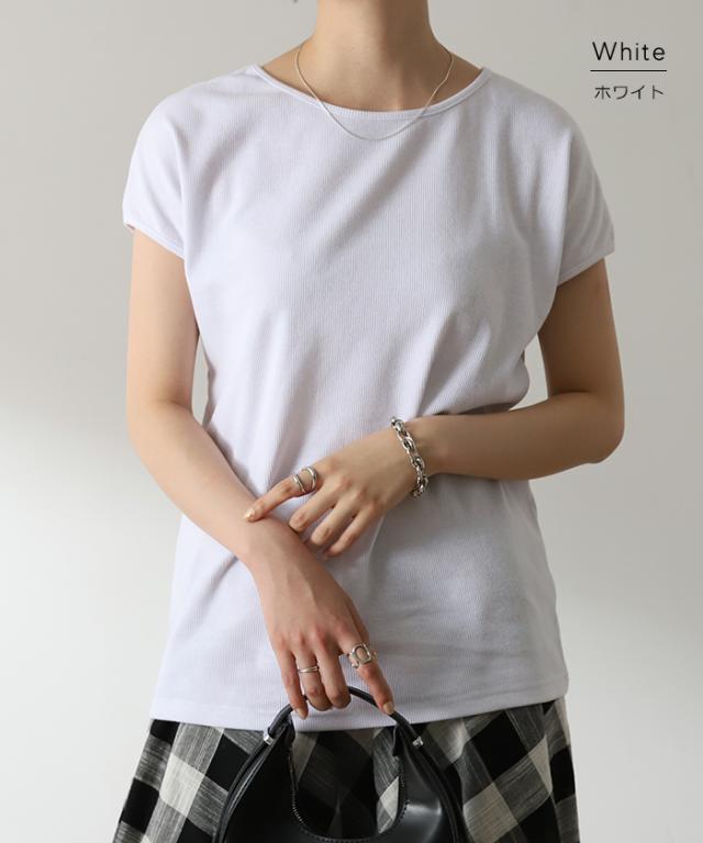 リブ素材で仕立てたフレンチスリーブカットソーです。