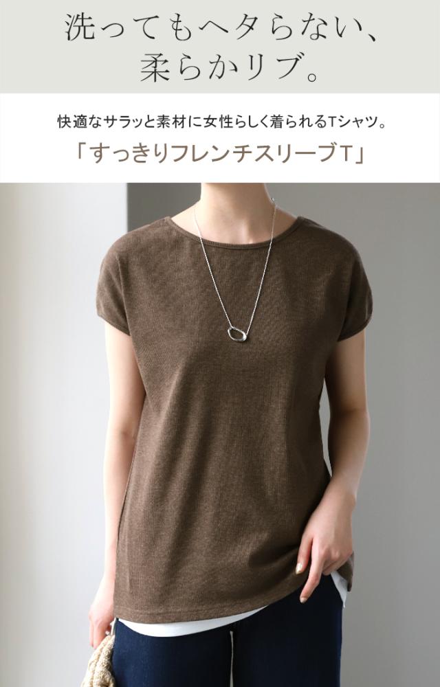 フレンチT「 ヘタレ知らず。」 リブ Tシャツ 一部2月中旬入荷 トップス リブ レディース コンパクト 半袖 リブT フレンチ インナー カットソー 体型カバー ティーシャツ フレンチスリーブ クルーネック きれいめ ストレッチ ロング 黒 ブラック 白 春 夏 HUG.U 秋新作