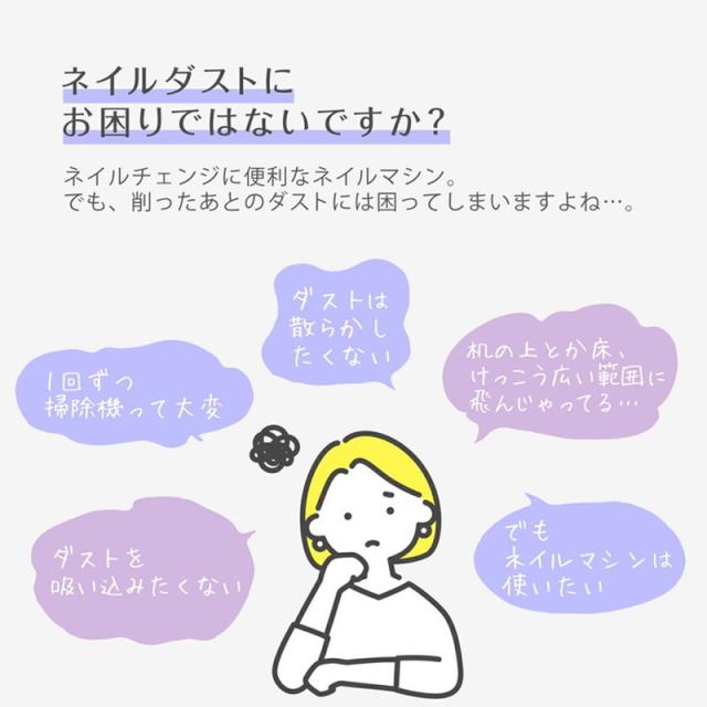 「ネイルダスト対策」ネイルダストは主にジェルネイルをオフする際に多く発生する粉塵です。ネイルダストコレクターを使うことで施術中に発生するネイルダストを吸い込んでくれます。<br><br>