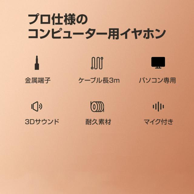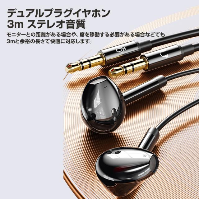 3.5mmデュアルプラグ インナーイヤー型 イヤホン マイク付 パソコン用 長さ3m 通話可能 高音質 イヤフォン 有線 ゲーム デスクトップPC テレワーク リモート会議