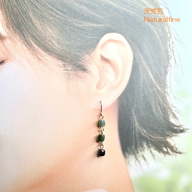 ピアス イヤリング アレルギー対応 天然石 ネフライト チタン 樹脂金具 パワーストーン 繁栄 健康