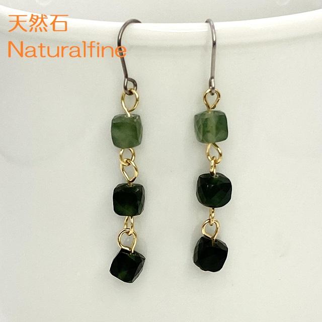 ネフライトがグラデーションになっています!! 金具は、チタンでネフライトをつなぐTピンは、ステンレスですので、アレルギーの方も安心してつけられると思います! またジェダイドと共に聖なる再生の石として古くから大切にされているそうです。