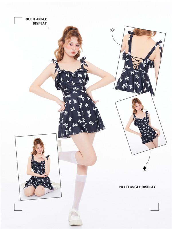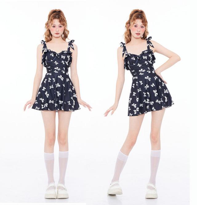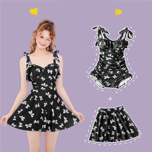 【レビュー投稿で+5%還元】モノキニ水着 超かわいい水着 半袖 モノキニ水着+スカートリボン柄 モノキニワンピ2点セット体型カバー 10代 20代 30代 可愛い温泉