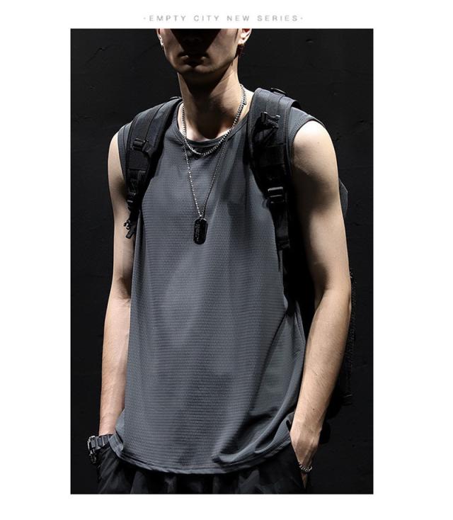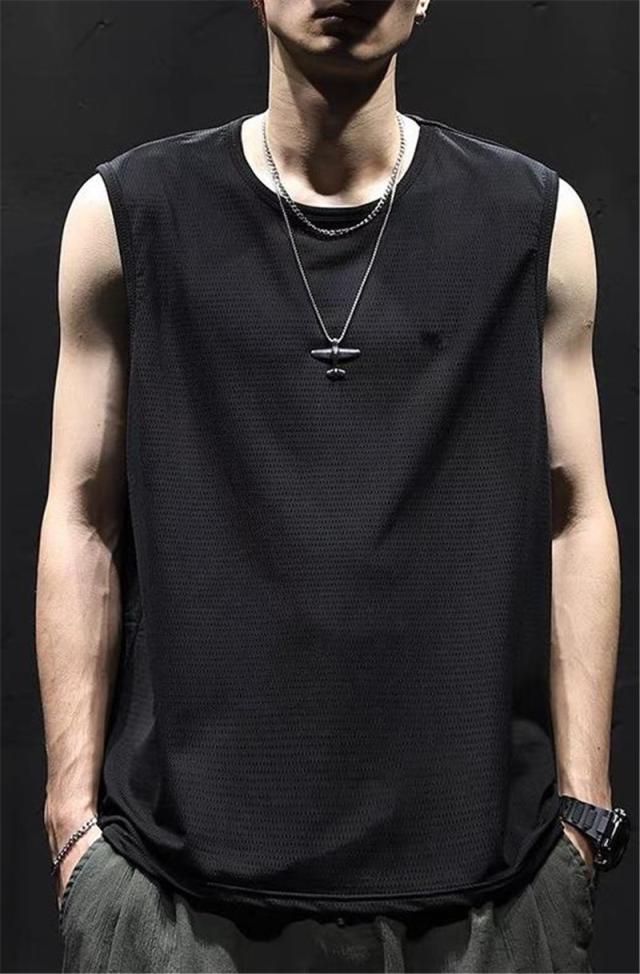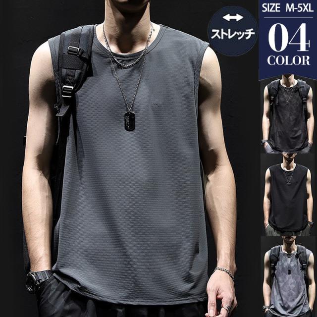 タンクトップ メンズ トップス インナー ノースリーブ メッシュ 無地 シンプル スポーツ バスケットボール カジュアル ひんやり