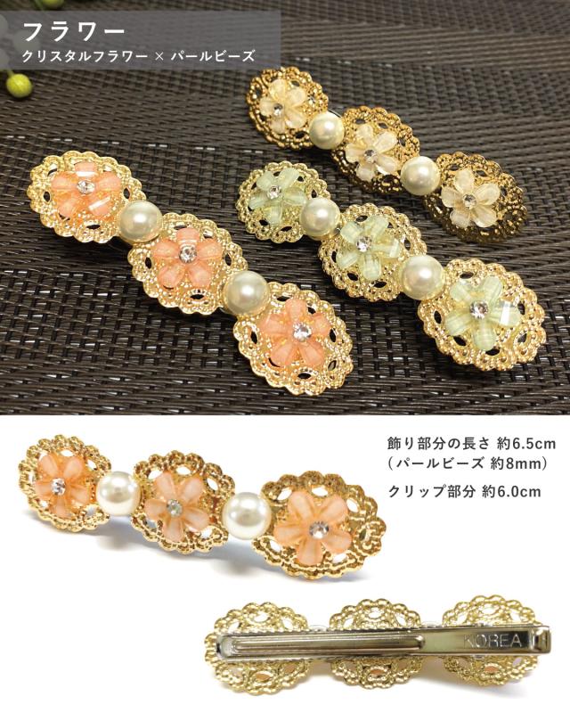 ■サイズ:フラワー飾り部分の長さ 約6.5cm / パールビーズ 約0.8cm / クリップ部分 約6.0cm