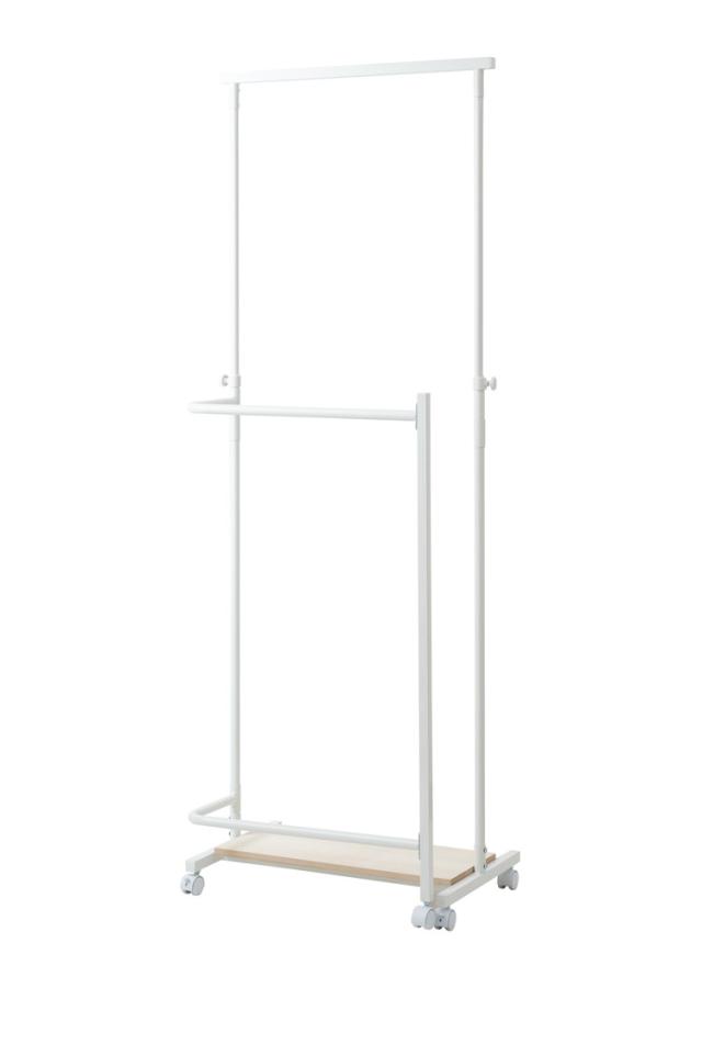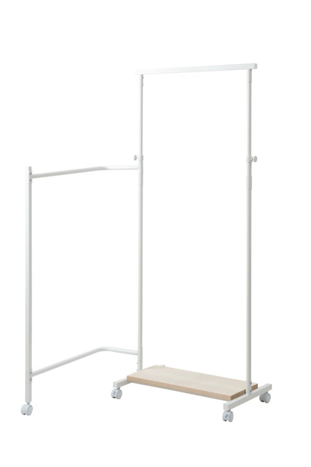 IKOU キャスター付き衣桁 高さ伸縮 回転式ハンガー ホワイトナチュラル 桐棚 ハンガーラック 衣桁 着物 ホワイト スリム コートハンガー 省スペース 和 洋室 寝室 玄関 子供 洋服 リビング キャスター(代引不可)【送料無料】