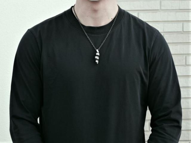 おまけ真鍮チェーンの55cmを使用(モデル:男性 身長170cm がっちり体系)