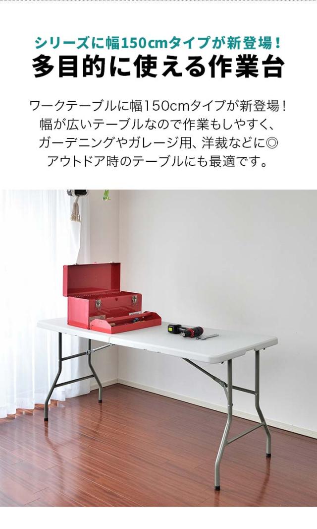ワークテーブル 折りたたみ テーブル 作業台 幅約150cm×70cm 折りたたみ デスク 折り畳み ワークベンチ 机 事務デスク 作業テーブル 作業机 PCデスク シンプル 組立て 簡単 便利 コンパクト 簡易テーブル 簡易デスク DIY BBQ 1年保証 送料無料