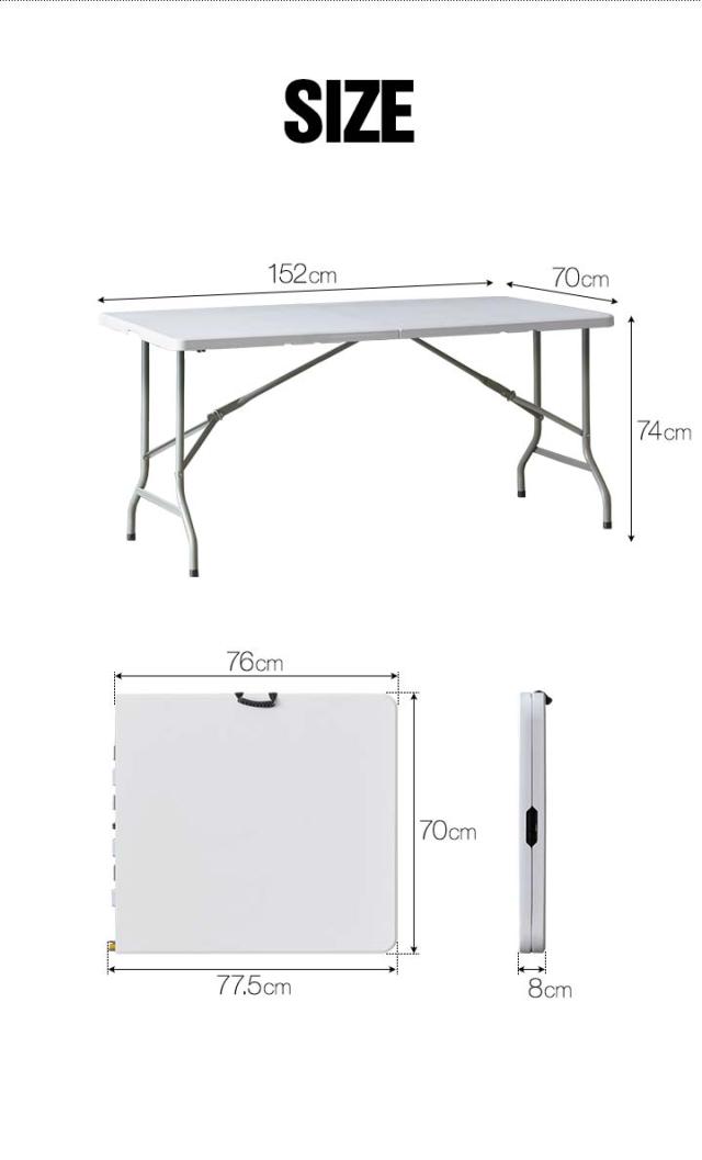 | サイズ: 展開時 : (約)幅152cm×奥行70cm×高さ74cm 折畳時 : (約)横77.5cm×縦70cm×厚さ8cm(蝶番含む) |