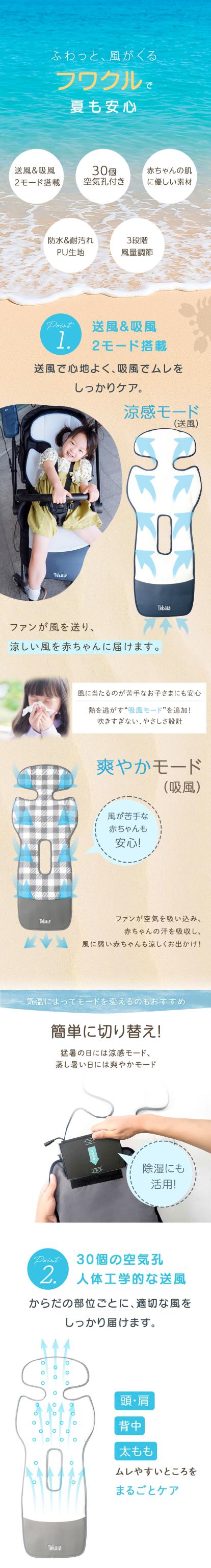ベビーカー シート ファン付き 冷感 夏用 暑さ対策 ベビーカー 扇風機 クーラー 日本 TOKAIZ正規品 保冷剤不要 送風&吸風2モード メッシュ 洗える チャイルドシート カバー 車 接触冷感 ひんやり 冷却 クールシート 赤ちゃん 新生児 子供 お出かけ