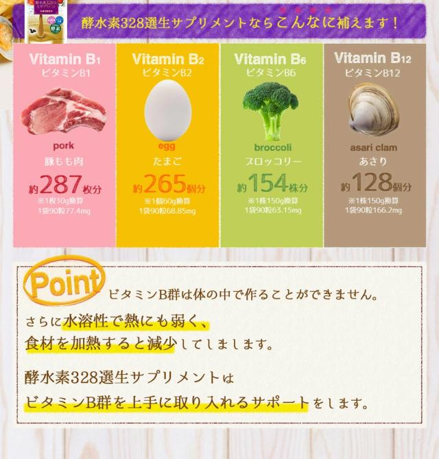 ビタミンB1:150〜300% ビタミンB2:150〜300% ビタミンB6:150〜300% ビタミンB12:150〜300%