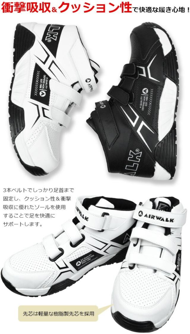 | スケボー、スノボー、サーフィンで知られるUSA発ナショナルブランド「AIRWALK(エアウォーク)」のハイカットモデル安全靴「ベルトライン」です。 3本ベルトでしっかり固定でき、足首までしっかりとサポートします。 クッション性に優れ、横からの衝撃にも強いので、長時間履いても足が疲れにくいのも特徴です。 先芯は軽量な樹脂先芯を採用し、アウトソールは耐滑仕様で、アッパーのパンチングメッシュで通気性もアップしており、快適な履き心地です。 ワークからプライベートまで使える、おしゃれな見た目と機能性を兼ね備えたプロスニーカーです。 | ||||||