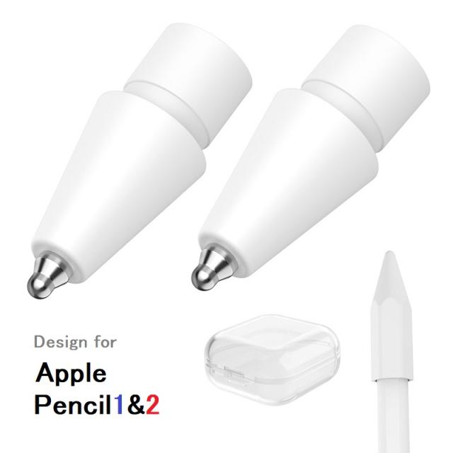 | AHASTYLE アップル Pencil 1/Pencil2対応 交換用ペンチップ メタル先端 同色交換用ペン先2点、白いペン先保護キャップ、携帯用クリアケース付(ホワイト、クリア)2色選択 |